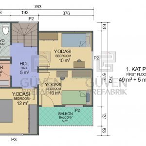 105 m2 Ucuz Dubleks Prefabrik Ev 3+1